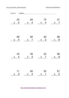Practica la multiplicación con la siguiente ficha. OjO las multiplicaciones pueden estar mezcladas, es decir, pueden tener o no llevadas, estad muy atentos. Debéis copiarlas en un cuaderno y mandarnos una foto (voluntario)